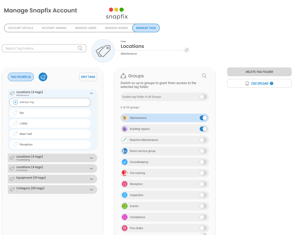 - Use the Create New Tag or Create New Folder buttons to start building your tag structure.